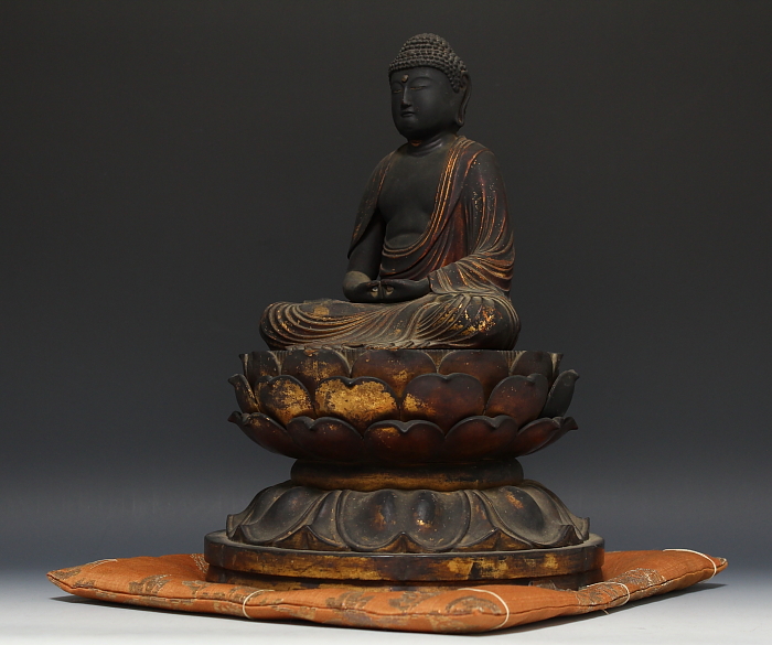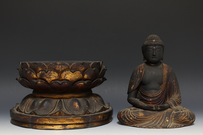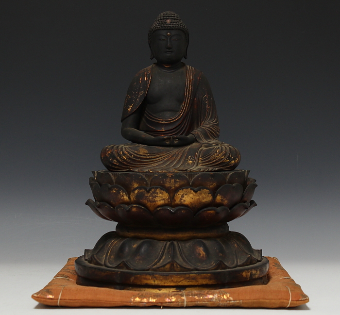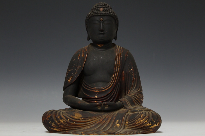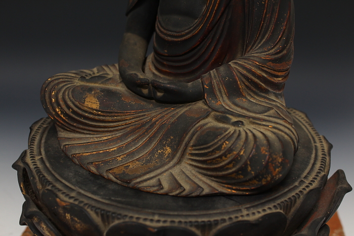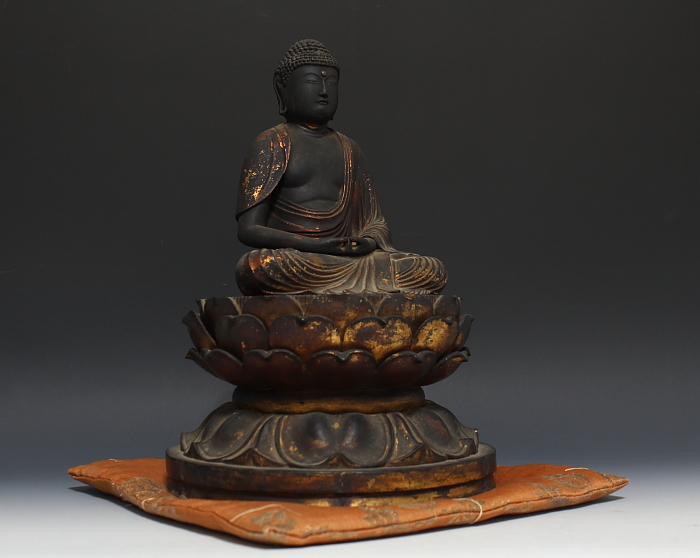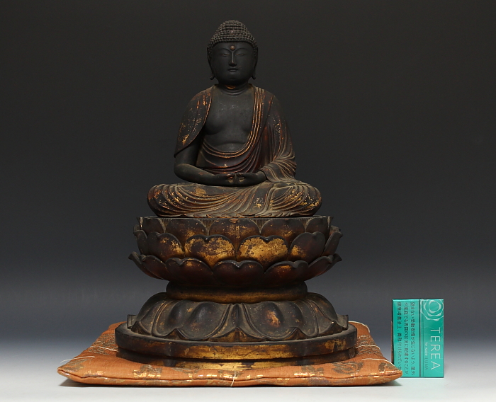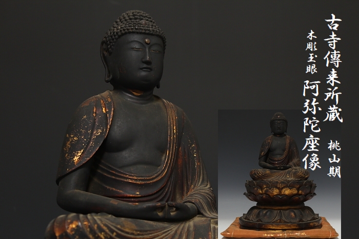 商品名:古寺所蔵 傳来 木彫 玉眼 阿弥陀座像 桃山期